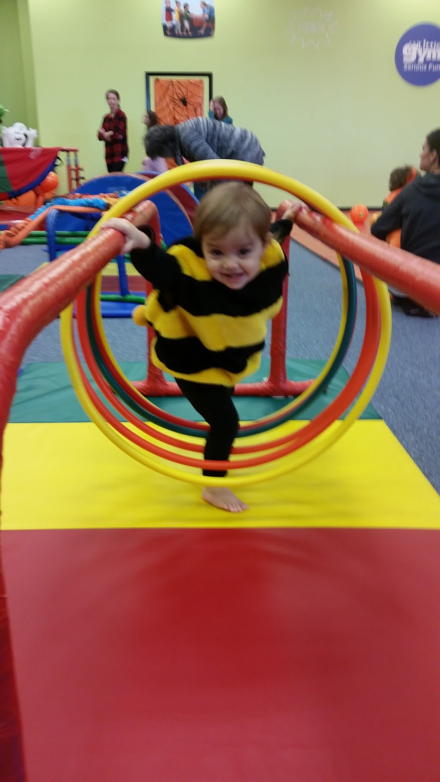 And a few of Ariana today at The Little Gym. This week the kids can wear their costumes. She is having a blast at her gym class.